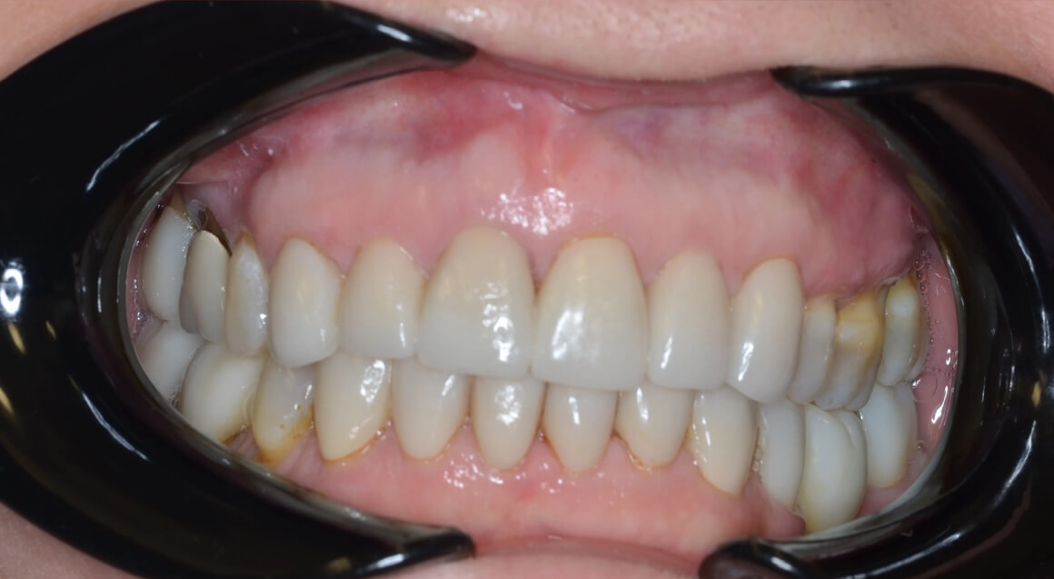 This patient never liked her smile, and was eager to get it restored. By placing implants on both the top and the bottom, we were able to create a full new set of teeth that get put in permanently, saving her the trouble of dealing with dentures and giving her the confident smile she always wanted.